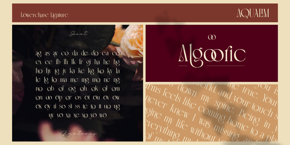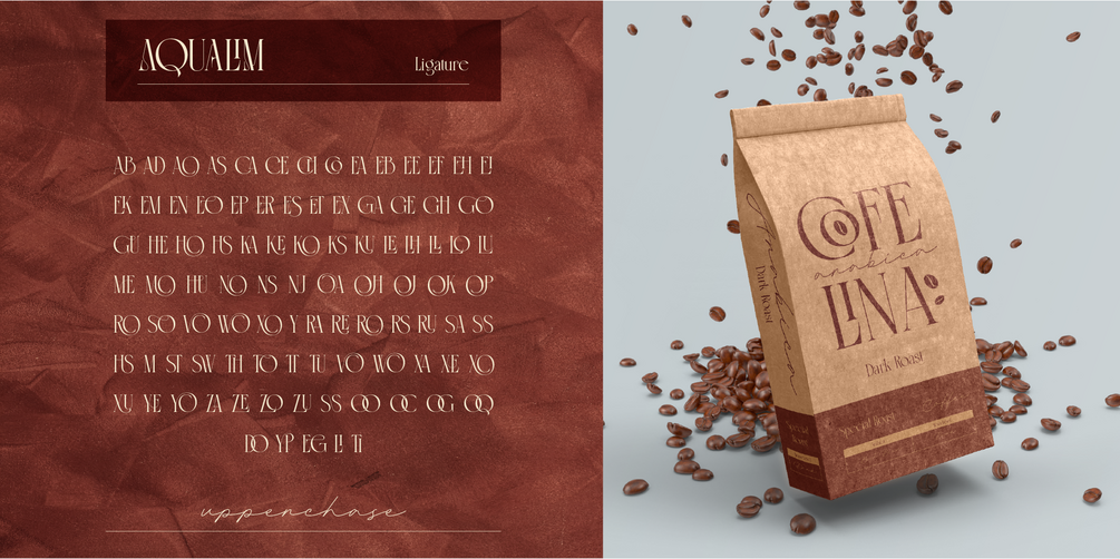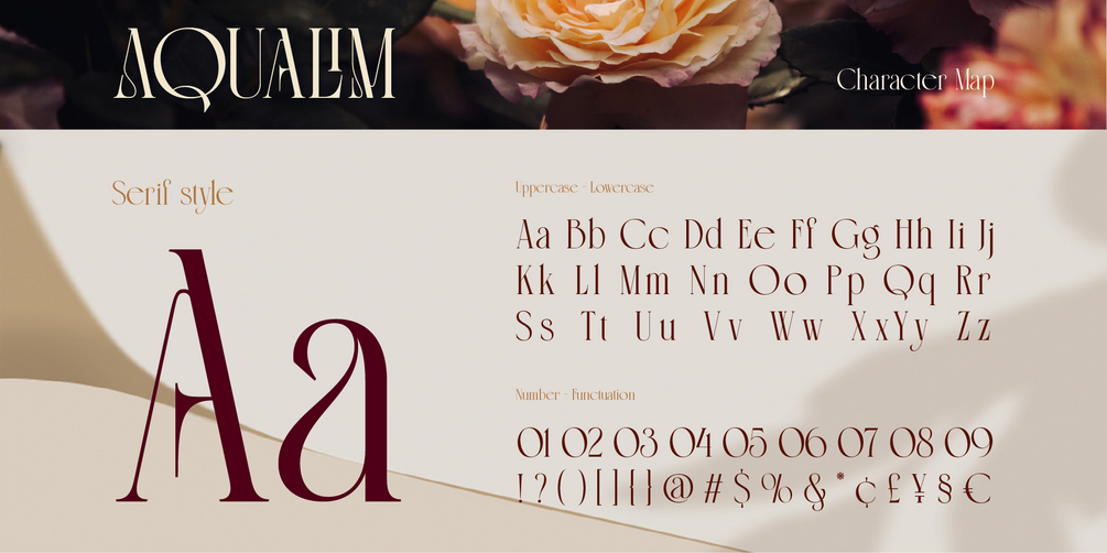 Aqualim Signature, when classic of serif meets the elegance of script. This duo font bring the aesthetic of classy and luxury look so its perfectly suit for headline, logo, covers, posters, quotes, magazine, wedding invitation, product packaging, merchandise, social media, marketing materials and many more!