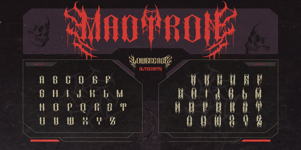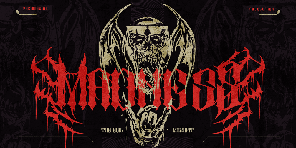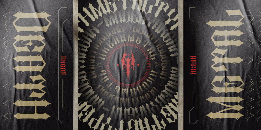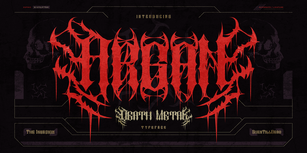 Argan perfectly used in promotional materials for metal concerts, album artwork or cover, concert posters, branding and any design that requires a touch of death metal.